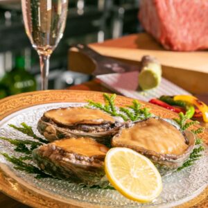 前菜・旬の野菜・和牛お造り・やわらかあわびステーキ・